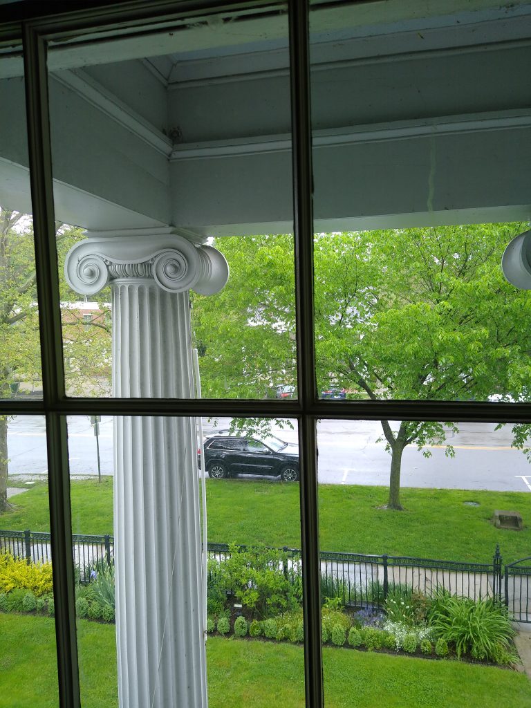 Exterior column of the Avery Downer House, seen from a second floor window. Nice grid, I thought.